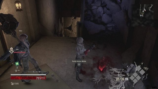上部に、Rotten Mistle があります。それを浄化してマップのセクションを明らかにし、道を見つけやすくします。その後、ミストルの左側に向かい、レベルの最初へのショートカットのロックを解除します.近くのミスルで休んでレベルアップし、ヒーリング アイテムを補充してください。