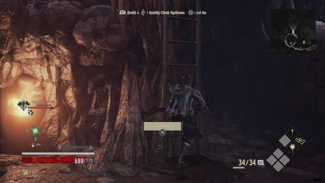 見知らぬ人と協力することに同意すると、上部にはしごがある近くのランプに気付くでしょう。それを利用して、次のセクションに進むことができます。または、真っ直ぐ洞窟の奥深くに向かうこともできます。