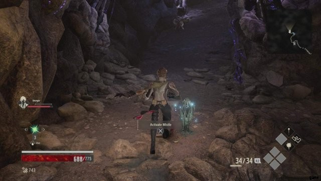Mistle から洞窟内の狭い道を戻り、Revenant Stranger に向かいます。彼はあなたを助けます。