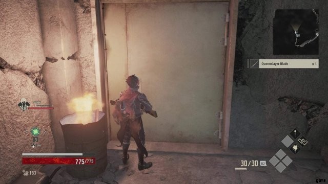 敵を倒しながら、別のチェストに向かって進みます。この時点で、発見した武器やアイテムを試すことができます。