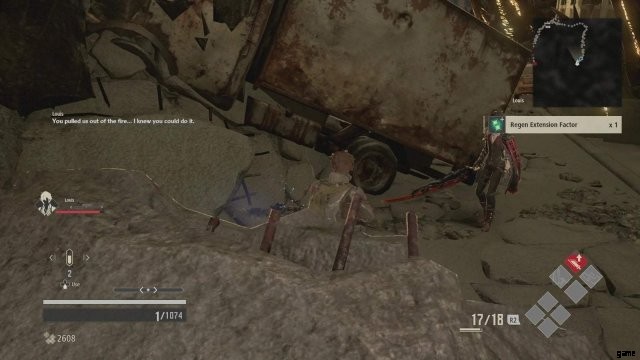 とりあえず、胸の左側の道を進み、右に曲がって小さな行き止まりエリアに向かいます。ここでは、大きな敵と別の Regen Extension Factor を見つけることができます。必ず手に取ってください。