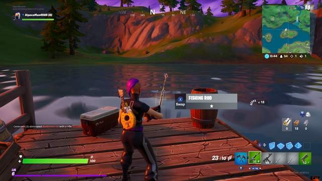 Fortnite Chapter 2 の多くの変更点の 1 つは、釣りの追加です。そうです、釣り竿を手に取り、あらゆる種類の隠された宝物を釣りに行くことができるようになりました。この特定の新世界チャレンジでは、釣り竿を使って武器を捕まえる必要があります。