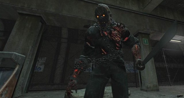 地下深くに初めて入ると、研磨用のこぎりが取り付けられたこのボスの子供に遭遇します。銃身部分は弾丸に耐性があると思いますが、手榴弾や近接攻撃には確実に脆弱です.足を撮影することもできます。殺されると、すぐ先にあるドアのロックを解除するために使用できるキーをドロップします。