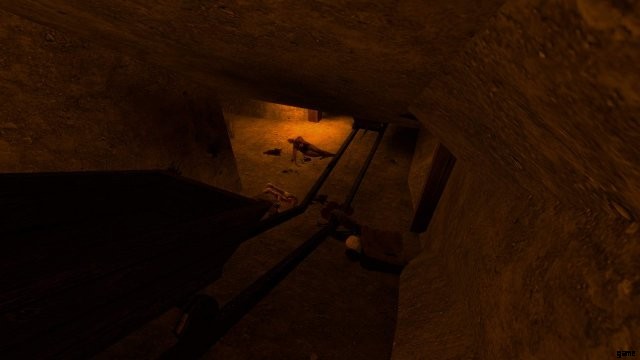 このポイントから先に進むには、このシャフトを下に落とす必要があります。降りるときは必ず壁を抱きしめてください。そうしないと、落下ダメージで死んでしまいます。