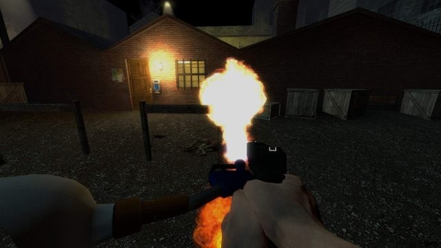 ガス缶を爆発バレルに持ってきて、ガス缶を撃ちます。これで火がつき、樽が爆発し、歯車を持って逃げることができます。