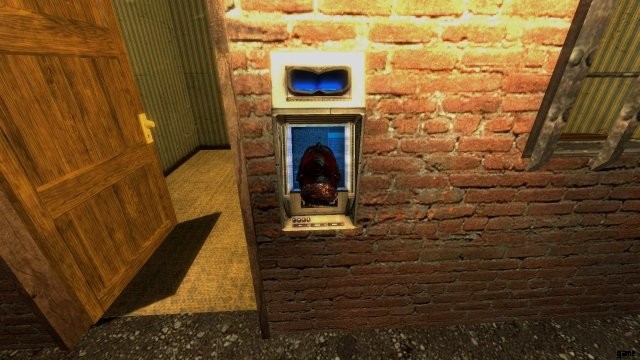 小屋に入ると、斬首された頭があります。それを使ってスキャナーのドアを開けてください。