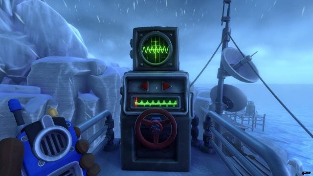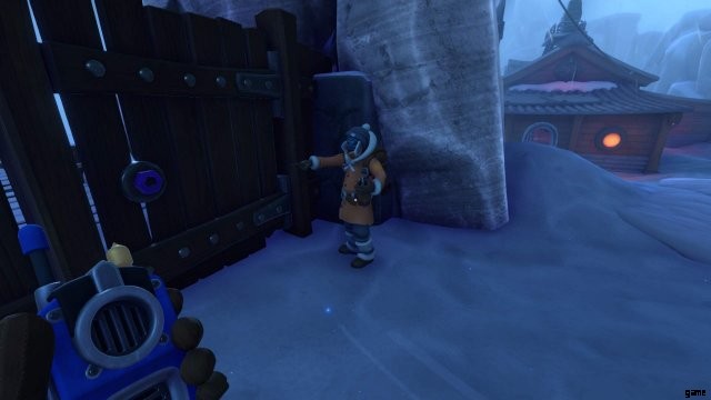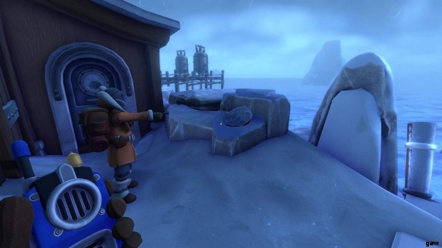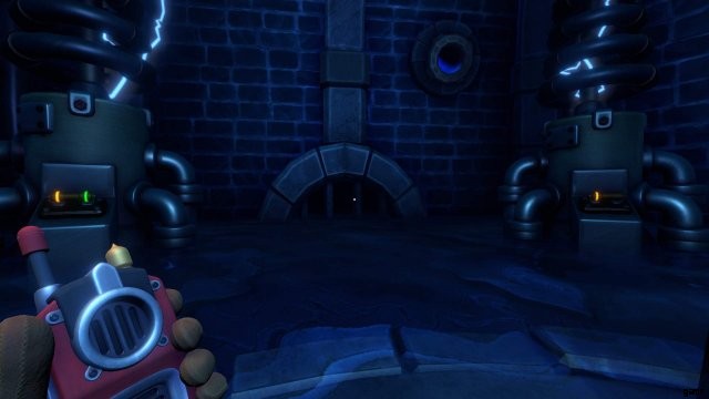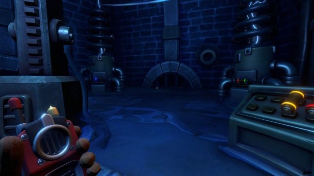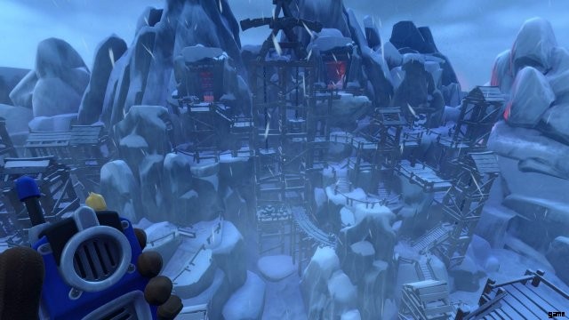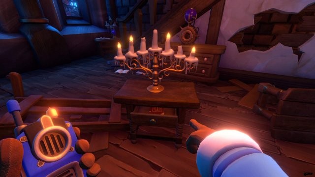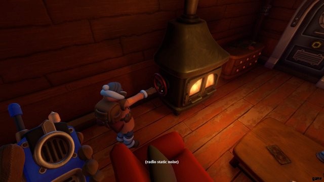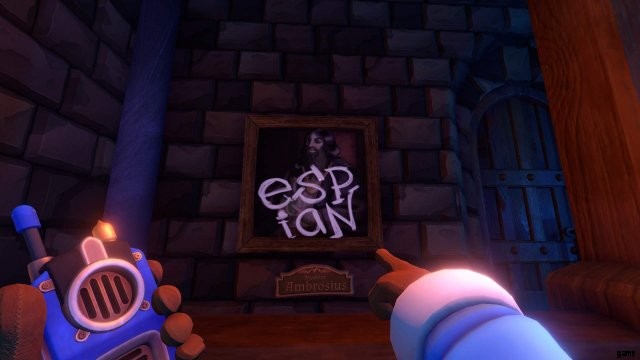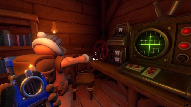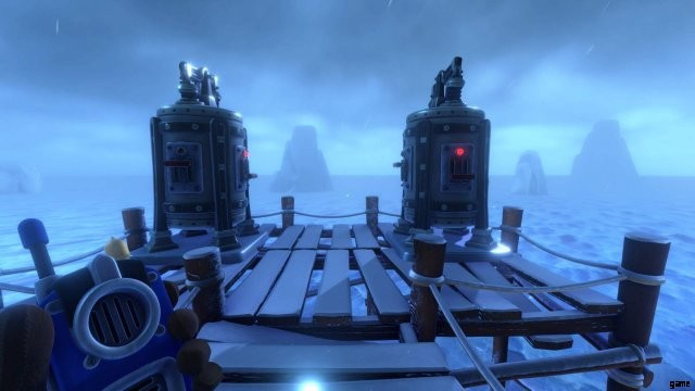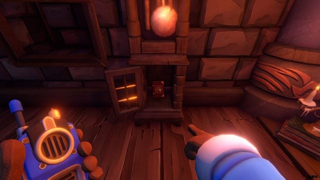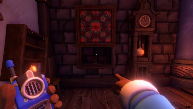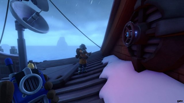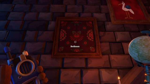 The player in the fountain needs to gradually climb the stairs, which the second player will rotate in parts in his room through a special mechanism (First screen).