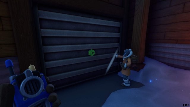 - 左側のプレイヤーはマークのあるエレベーターに行き、一番上まで上がり、つるはしを持ってエレベーターの屋根を通って恐竜の頭蓋骨のあるエレベーターに行きます.