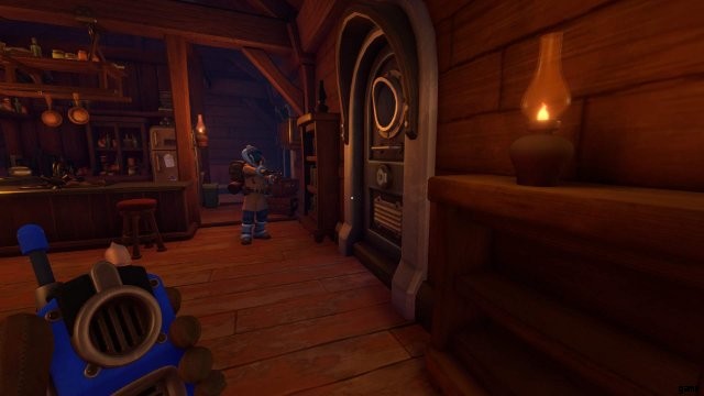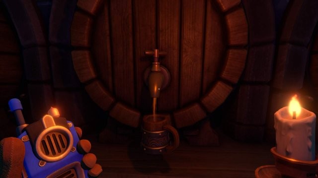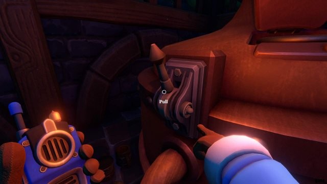 The rooms of two players are connected by rails with trolleys. They are needed to transfer resources for potions to each other. One puts objects in a trolley and presses a lever. Another picks up these items and uses them for their intended purpose.