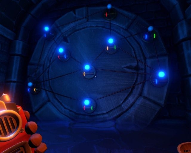 It is also necessary to fill three tanks with green, orange and purple flames. While in one of the rooms there is a lever for supplying a red flame, and in the other two levers for yellow and blue .