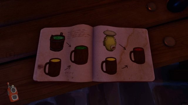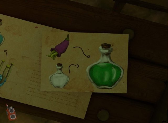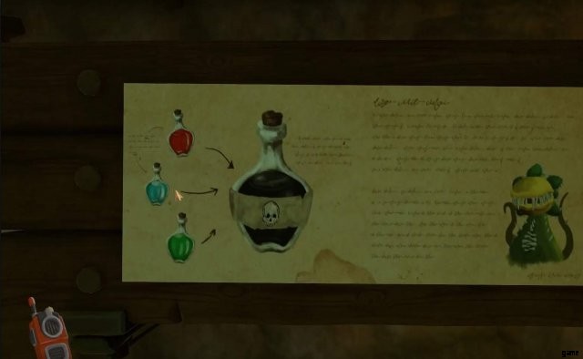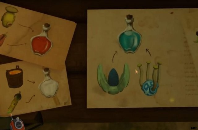 Having received all three potions, they need to be folded into another device with three slots. After receiving the black potion, you need to fill it in the sprayer, which lies on the table next to the recipes in the same room in which you received the potion. The device must be transferred to another player, and he, in turn, must spray them on a huge plant that stores a second stone. The stone must be taken.