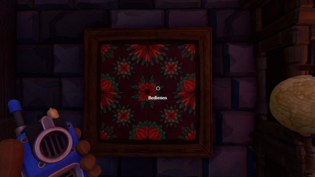 Now you’ve collect all 6 Books. Go down in the corner to the left of the fireplace. You must set in your book now in the correct order. Remember the picture next to the entrance door.