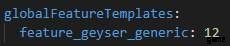 globalFeatureTemplates は、ワールドで生成されるテンプレートのタイプと数を決定します。デフォルトでは、グローバルテンプレートを許可するサブワールドで、12 の間欠泉が世界中でランダムに生成されます。グローバル機能は「StreamingAssetstemplatesfeatures」にあります。