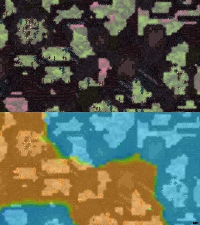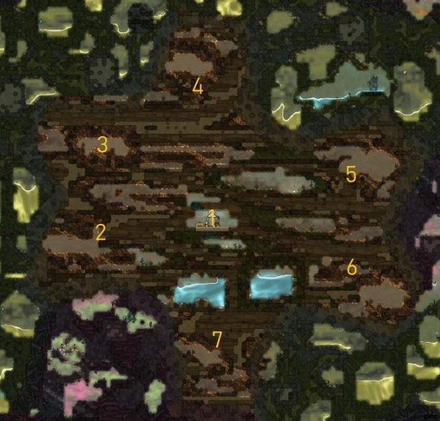 それらのすぐ周囲には HotMarsh と Jungle のサブワールドがあり、それぞれゲーム内のスライムとコースティック バイオームに対応しています。