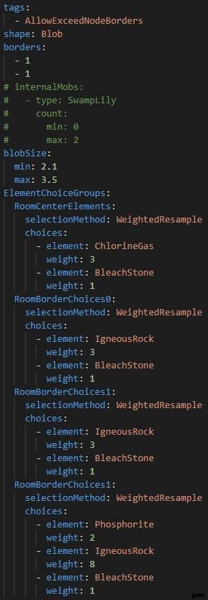 機能は、サブワールド生成のオプション コンポーネントです。これらは、水域などのサブワールドに特定の要素のポケットを挿入するための非常に便利な方法です。テンプレートや POI とは異なり、.yaml で設定されたパラメーターに従って、形状とサイズがランダムに生成されます。通常、POI は間欠泉または人間活動の残骸ですが、フィーチャは要素の自然な形成をより重視しています。