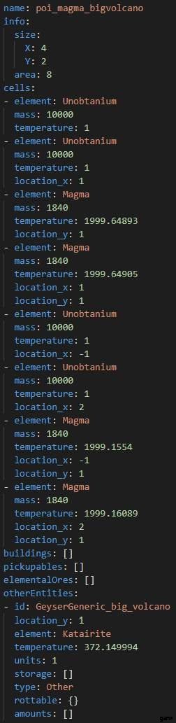 Default POI .yaml’s tend to be exceptionally long. Because there are no randomly generated elements in POI, each .yaml contains a cell-by-cell list of all of its elements and their properties.