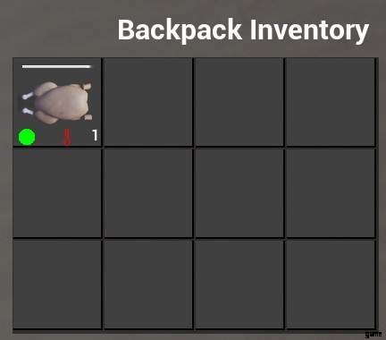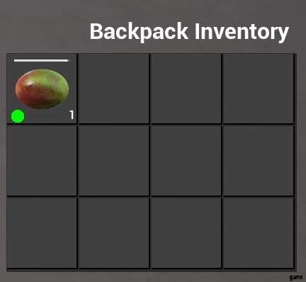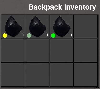 - [または]を押す – 左手または右手でアイテムをバックパックに入れます (十分なスペースがある場合)