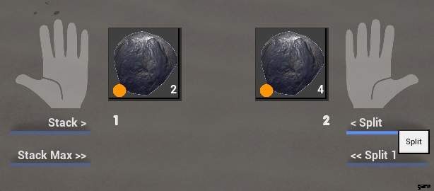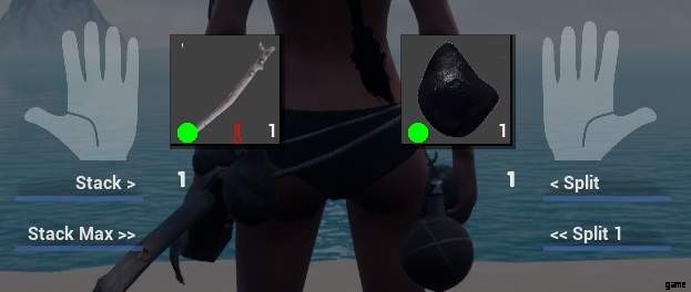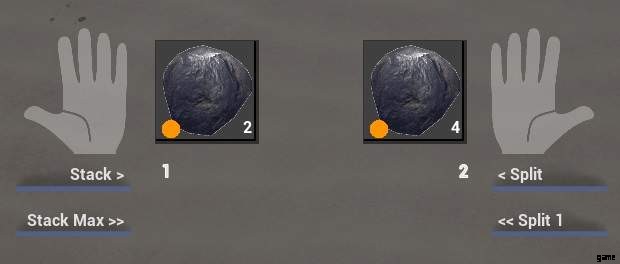 すでに気づいているように、私たちには普通の人として使える手が 2 つあります。それで、それがどのように機能するか(または機能するはずです)。各アイテムはいくつかの手を好みます。この手が占有されている場合、それは他の空の手に行きます。手がふさがっている場合は商品をお受け取りいただけません。アイテムがスタック可能で、同じアイテムが手元にある場合、容量がいっぱいになるまでスタックされます。