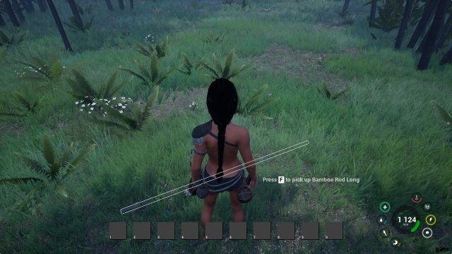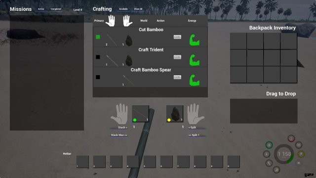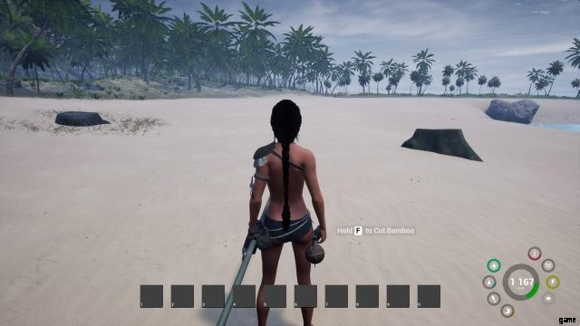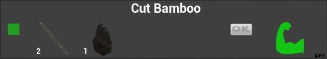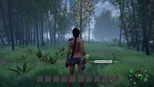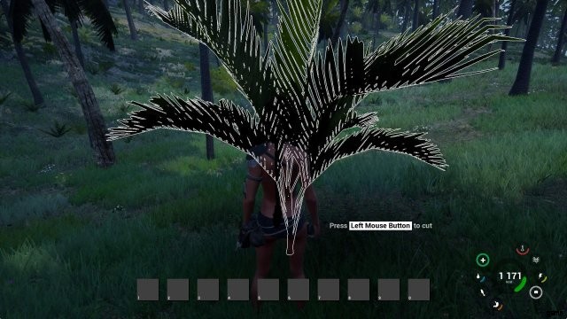 一部の品目 (竹とヤシの葉) は収穫する必要があります。基本的には近接攻撃と同じです - 鋭利な道具 (ナイフ、斧) でそれらを切断する必要があります。それらに向かって進み、鋭利なものを装備して左クリックします。