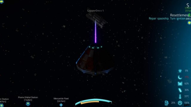 スペース ジャンクに近づき、パイロットの窓から見えるようにします。 NOVA には、マウスの左ボタンを押し続けると起動するマイニング レーザーが装備されています。スペース ジャンクに十分近づくと、ビームの端が別の色に変わり、銅、プラチナ、石英がインベントリに追加されているのが見え始めます。