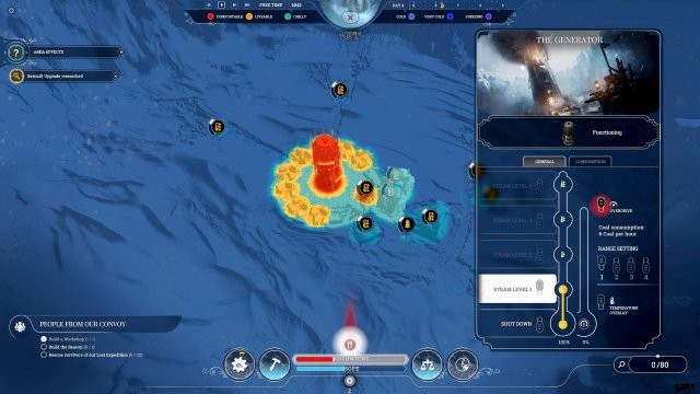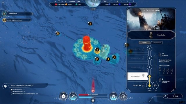 There will be times when the generator’s heating alone is not enough to keep people or workplaces warm, for this situation, you can turn on the Generator’s Overdrive function. This will put the generator into overdrive (duh) and pump the heating level up another level, 2 with upgrades. Allowing you to heat up places and homes for a brief period of time.