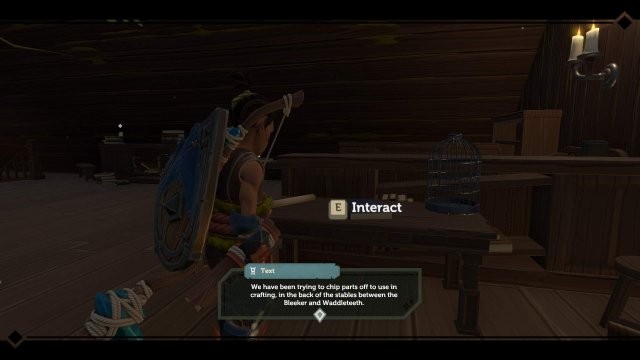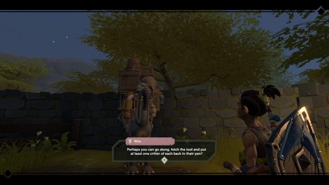 古代の厩舎に入ると、タンパのウェスがすでにあなたを待っています。よく聞くと、彼が 4 種類の生き物のうち少なくとも 1 匹をペンに戻すように頼んでいることに気付くでしょう。完了するまで、古代の厩舎を離れることはできません。