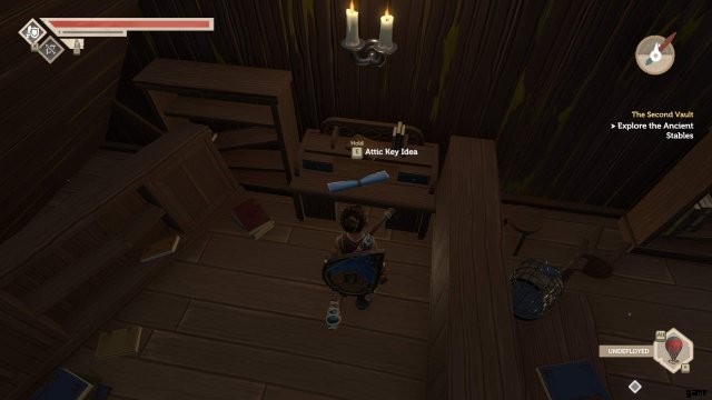 本の問題を解いて二階に上がると、数冊の本と屋根裏の鍵の新しいアイデアが見つかります。