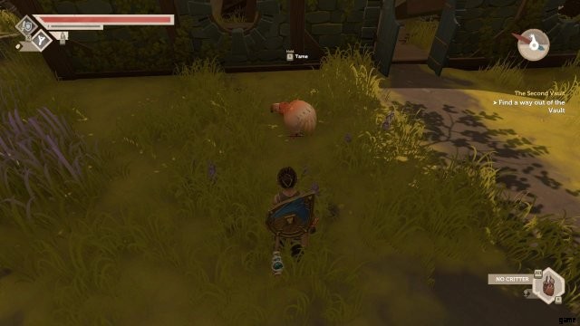 調教バンドを発見する 2 番目を取得します。これで、4 種類の生き物を飼いならすことができます。パフルズ、アルパファント、ブリーカーズ、ワドルトゥース。これらのクリーチャーの隣に立って R キーを押し続けると、これらのクリーチャーを飼いならしたり、飼いならしたりすることができます。一度に 1 体しか飼いならすことができません。クリーチャーを飼いならした後、R を押してとどまるように指示しない限り、クリーチャーはあなたについてきます。飼いならされた生物があなたについてきているかどうかは、画面の右下隅でいつでも確認できます。小さな矢印が表示されている場合、クリーチャーはあなたを追いかけています。小さな時計が見えたら、生き物はその場にとどまります。飼いならされた生き物を持っているときにRを押し続けると、あなたに向かって走り始めます。古代の厩舎内で配布されている本を読むとわかるように、すべての生き物には特別な能力があります。