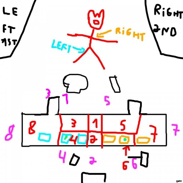 - 3 つ目の部屋には、もう 1 つあり、2 つ目の門の左側、少し離れたところにあります。残りはランダムです。1 つは 4 番目のゲートの前にあり、もう 1 つは部屋の途中にあり、最後は最後のゲートの隣にあります。