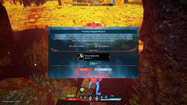 最初の武器である石頭斧を入手するためのクエスト ダイアログ ボックス。