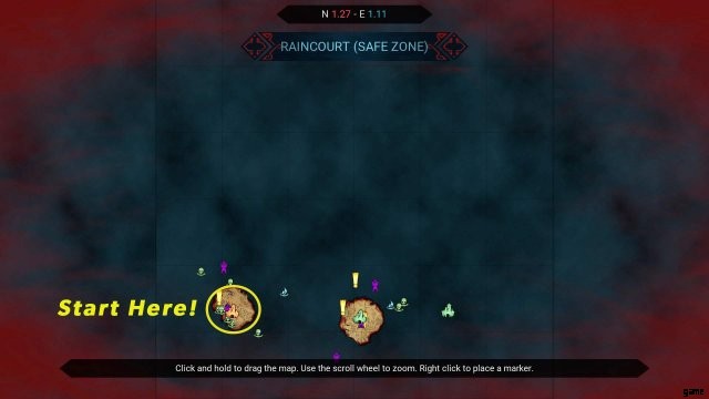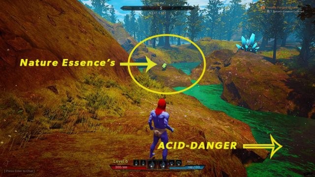 このガイドでは、Nature's Essence リソース ノードに非常に近い西部のセーフ ゾーンのスポーン場所からゲームを開始することをお勧めします。そこから出発した場合、またはそこに移動できる場合は、左のゲートから出てください。左の門を出たら、左にとどまり、泡立つ緑色の液体のプールが見えるまで、岩の端を一人で歩きます。