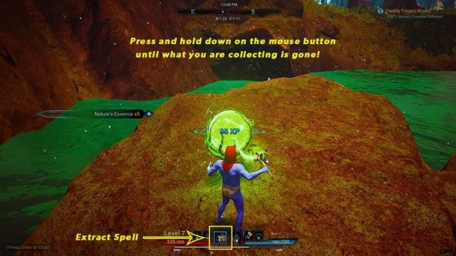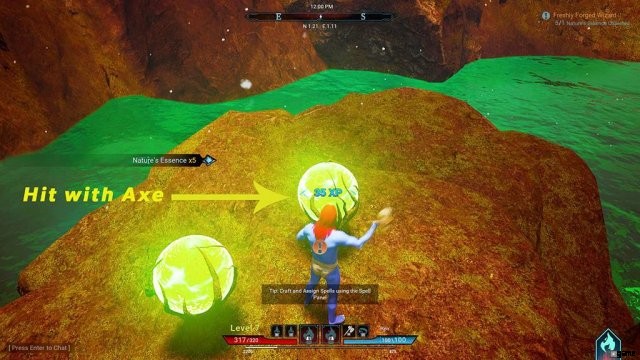 Extract Spell を作成するには、Nature's Essence が必要です。これは、世界の球体のようなノードから収穫されるか、クリーチャーからドロップされるか、木材を収集しているときに樹木から収穫されるクラフト材料です。