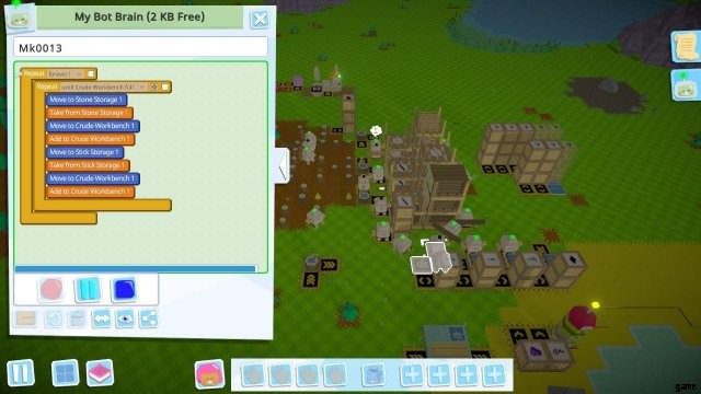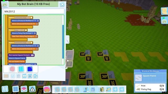 - 例 2: (Bot はアップグレード mod によって 4 つのバックパック スロットを持っています) 必要なアイテムを 4 つ集めてバックパックに収納し、次に他のアイテムを 4 つ集めて、すべてを作業台に空にします。これにより、ボットの移動時間が節約される場合があります。