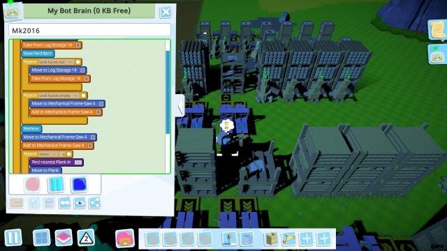簡単なプロセス 一度に 3 つの丸太を板に積み、次に降ろします。ここのボットは完全に mk2 バリアントであり、合計 8 つのハンド スロットと 4 つのバックパック スロットのための手とバックパックのアップグレードが優れています。丸太には 4 つのスペースが必要です。このステップでは丸太から作った製品でバッグがいっぱいにならないので、ピックアップを x6 に設定する必要があります。