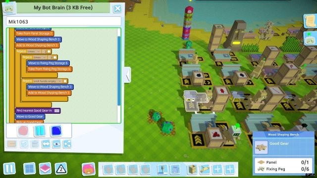 さらに後のゲームの代替:優れたバックパック アップグレード mod (つまり、6 つのハンド スロットと 4 つのバックパック スロット) を備えた Mk2 ボット。パネルを手に取ってバックパックに収納し、次に 6 つのペグを手に取り、クラフトのためにすべてベンチに届けます。