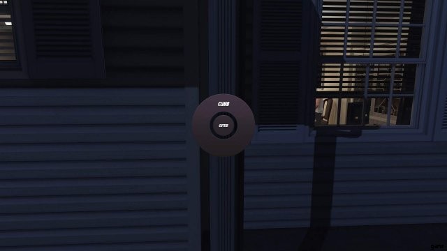 3. ガターを登る:あなたの強さを増やします。雨どいは裏庭のベランダの右側にあります。それをクリックしてメニューを表示し、[Climb] を選択します。