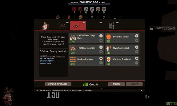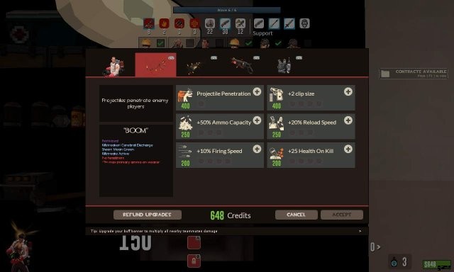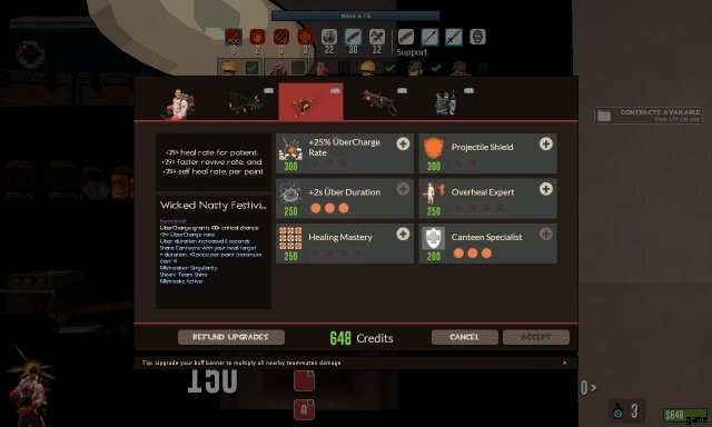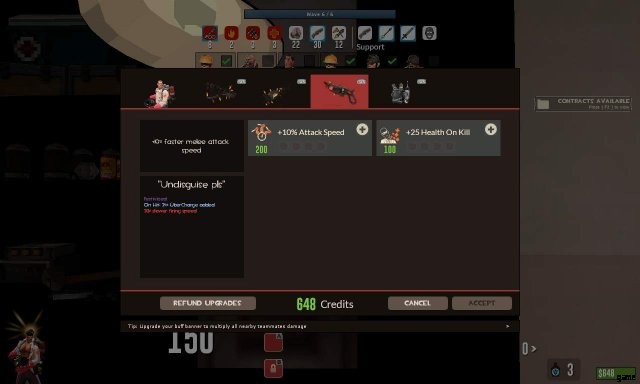 最初の波では、すべてのお金を水筒スペシャリストに直接使いたくない場合があります。このアップグレードに費やされた各ポイントは、食堂のコストを 10 クレジット削減することに注意してください。幸いなことに、水筒スペシャリストをレベル 1 に維持したまま、価格で水筒を購入することができます。ここにショーケースがあります。最後に残りのクレジットを見る: