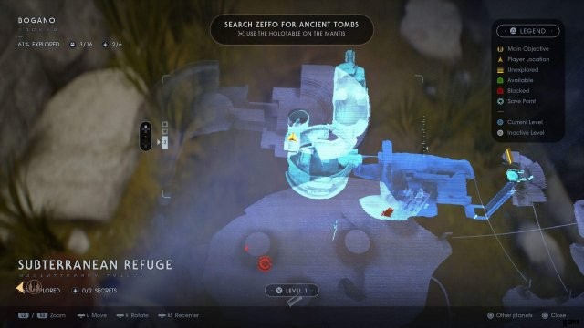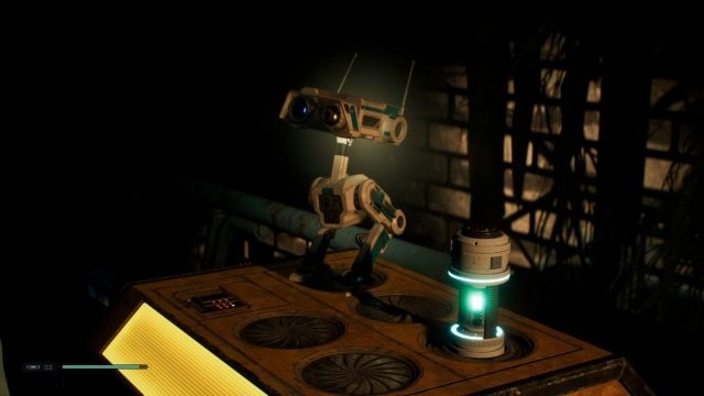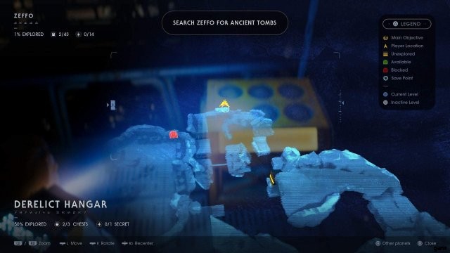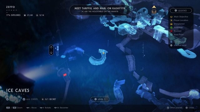 チェストは氷の洞窟にあるかもしれませんが、それにアクセスする唯一の方法は、インペリアル ディグ サイトの一番端を通過することです。 Dig Site の後ろにあるつるを使ってスイングし、それを使ってジップラインに進みます。 BD-1 が起動し、ラインをパワーアップします。棚に着いたら、壁に沿って座っている明るい黄色のチェストに出くわすまで道をたどってください.