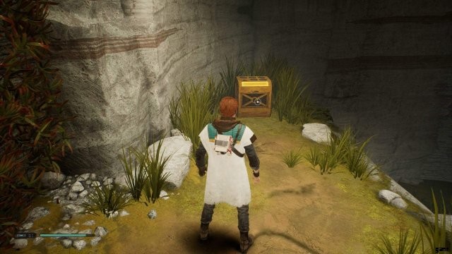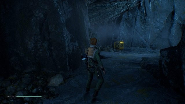洞窟に入ったら、ライトセーバーを光源として使用し、左に曲がり、プラットフォームに到達するまでパイプを横切って歩きます.ここ、金属製のプラットフォームの上部に、黄色いチェストがあります。