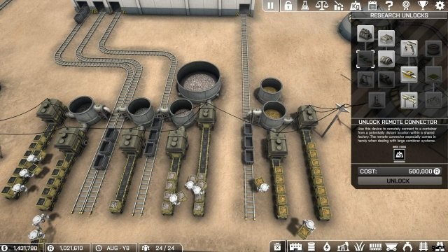 工場とリファイナーを調査した後、コンバイナー、クロートレイン、クレートゲート、トラックローダーのロックを解除するために、精錬された鉄75kgと精錬された石炭75kgを研究ドームに送り始めました。私のドローンはまだトラックに荷物を積み込んでいます。クレートを移動する速度がもっと速くなることを願っています。私の次の目標は、リモート コネクタを取得し、コンバイナで工場をセットアップすることです。私はもうすぐそこにいます…はい、次回はセットアップをもっとうまくやるでしょうが、私はこのゲームの学習曲線とそれを正しくしたいという願望が好きです "次回".