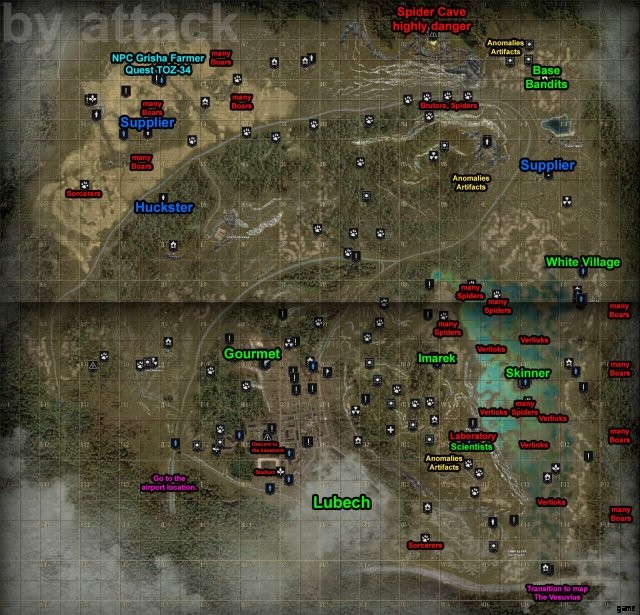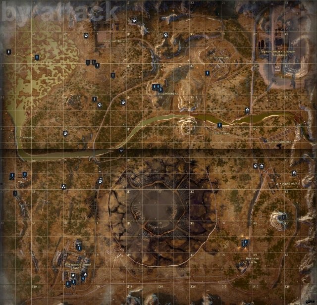 このマップでは、オンラインの Stalker ゲームのスクリーンショットと、数か月のゲームで私自身が付けたマークを紹介しました。
