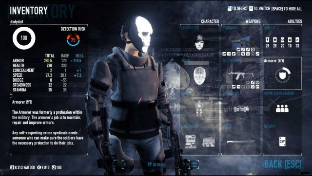 これはバトル ライフル (最大 99 ベース ダメージ) を使用した大音量のビルドで、Death Sentence One Down 難易度までの強盗用です。 DLC は必要ありません。