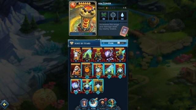 ルーンの助けを借りて、タワーと呪文をアップグレードし、それらの特性を高め、独自のプロパティを提供できます。カードの星の数が多いほど、より強力な効果が得られます。