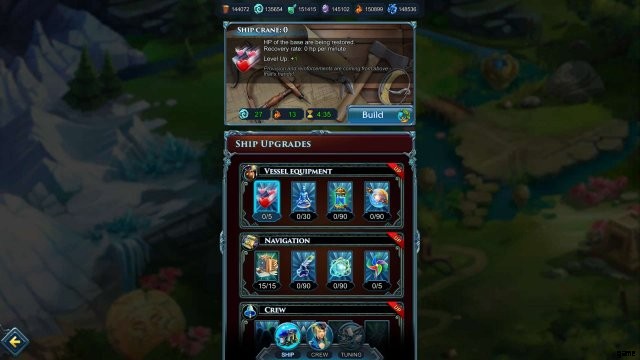 船をアップグレードするには、さまざまな種類のエッセンス (木、水、毒、石、火、空気) が必要です。新しいアップグレードは時間とともにアンロックされます。待ちたくない場合は、星を使って船をアップグレードできます。