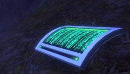 ビーチを襲撃し、暗い建物に入った後。大きな光るテーブルのある部屋にたどり着く前に、いくつかのドアを通り抜けます。左側に階段があり、床にデータ パッドがある小さなコントロール ルーム エリアにつながっています。