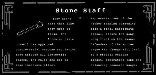 スタッフは、最も用途の広いアイテムであることを意図しています。射程距離、アーマー、高い攻撃速度、ルーンストーンを追加できる可能性により、ほぼすべての状況で機能するバランスの取れた武器になります。以前のフォームでは、彼らはあまりにも多くの DPS を扱っていました。すべての氷のデバフがスタックされる速さのために、氷のルーンと組み合わせると特に問題がありました。さらに、氷の杖にはボーナスの「プッシュ」能力があり、一部の敵に対して驚くべき防御力を発揮しました。