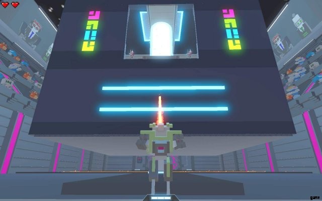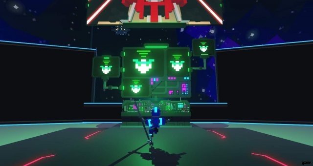 レベルをクリアしたら、ゴミを集めに来る小さな緑色の立方体のロボットを倒さなければなりません。彼らは速くて接近するのが難しいので、急いでください!