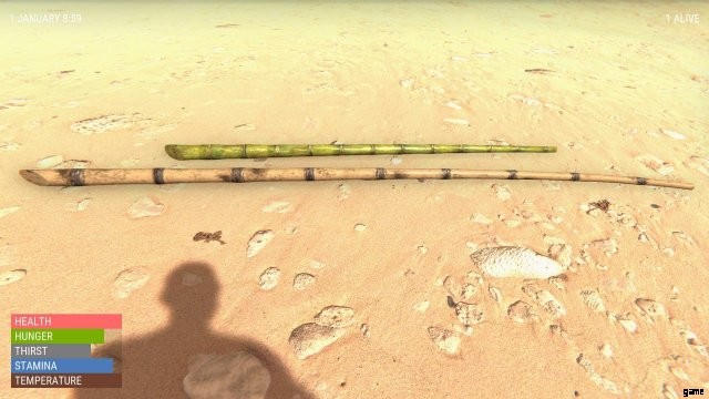 切ると槍として使用でき、動物に対して有効です (ゲームで 2 番目に高いダメージ:「ヒット」ごとに -7 HP)。