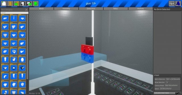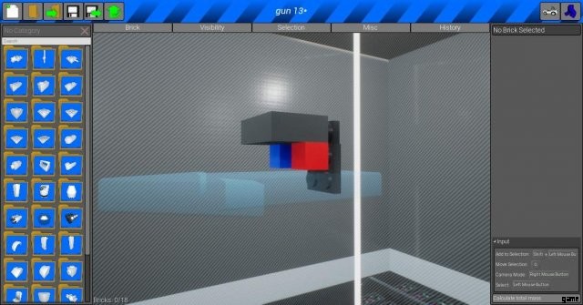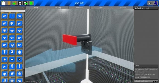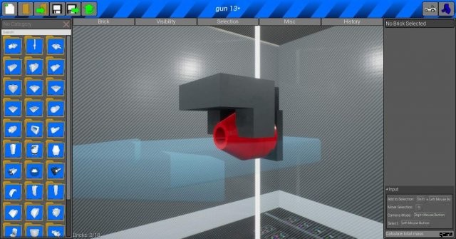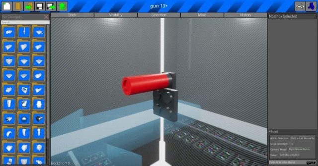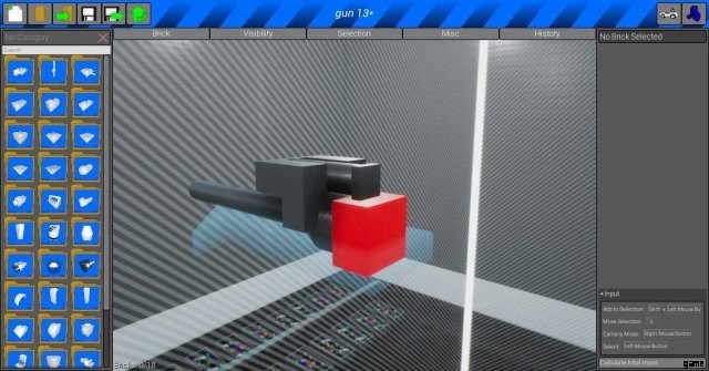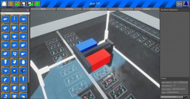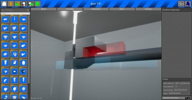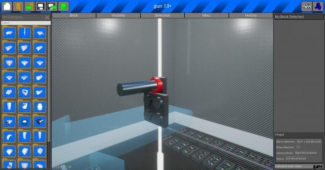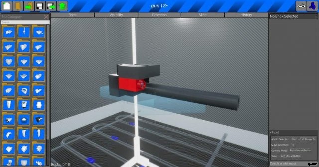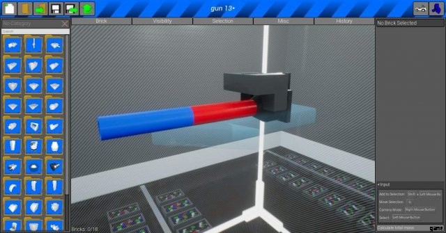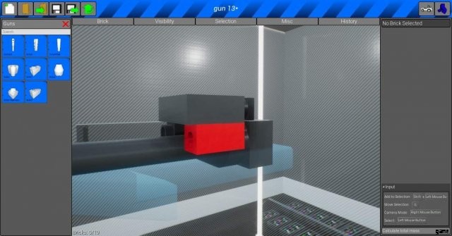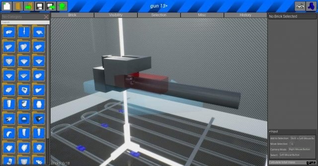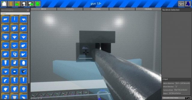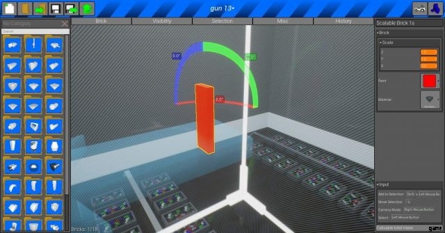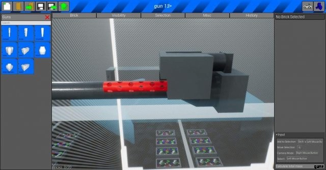 Gun 2x 2x 2 の端に Barrel 1x 1x 4 Flat を好きなだけ配置します (銃とバレルを配置するとき、材料はスチールにしました)。