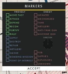 4.分隊とは異なり、移動中や防御中など、他のセクションのアクション マーカー (緑) を見ることはできません。これは、どこに行くべきかについてセクションに指示する司令官の仕事が増えることを意味します。マーカー上に乱数を生成するポイント オブ インタレストをマークして、他の人が見ることができます。